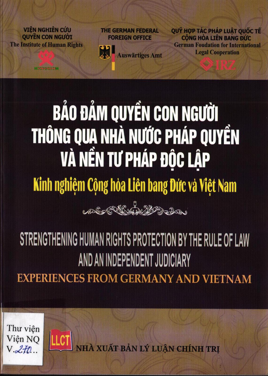 Với mục đích cung cấp luận cứ khoa học cho việc xây dựng và hoàn thiện cơ chế bảo đảm quyền con người thông qua Nhà nước pháp quyền và nền tư pháp độc lập, Quỹ Hợp tác Pháp luật Quốc tế (IRZ), thuộc Bộ Tư pháp Cộng hòa Liên bang Đức phối hợp với Viện Nghiên cứu Quyền con người, Học viện Chính trị quốc gia Hồ Chí Minh tổ chức Hội thảo khoa học quốc tế với chủ đề: Bảo đảm quyền con người thông qua Nhà nước pháp quyền và nền tư pháp độc lập vào tháng 11-2016 tại Thành phố Hồ Chí Minh. Hội thảo đã thu hút sự tham gia nhiệt tình của các chuyên gia am hiểu sâu sắc về quyền con người, nhà nước và pháp luật, các thẩm phán, luật sư của Cộng hòa Liên bang Đức và Việt Nam.