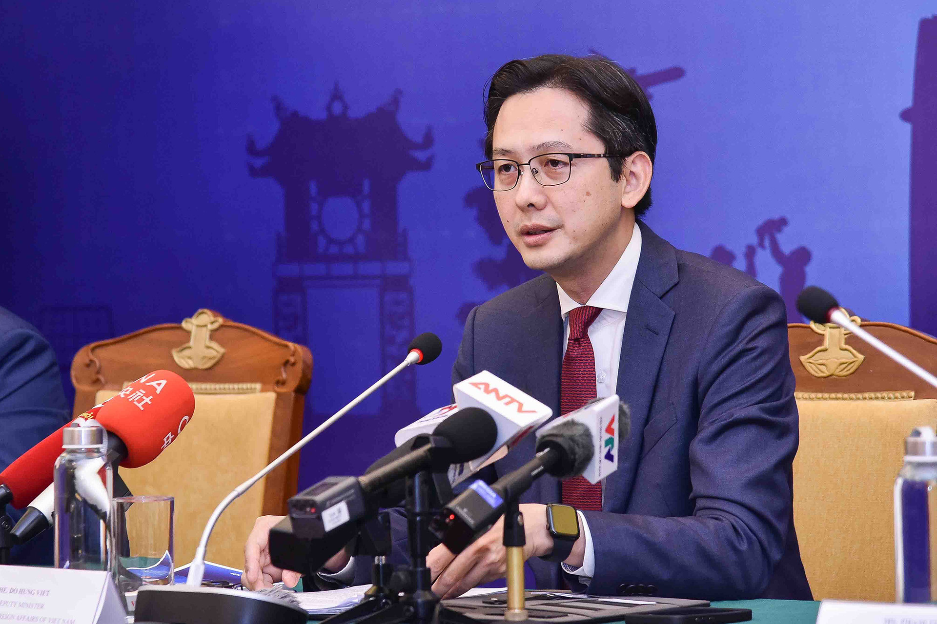 Thứ trưởng Bộ Ngoại giao Đỗ Hùng Việt trả lời tại họp báo. Ảnh: Minh Nhật |