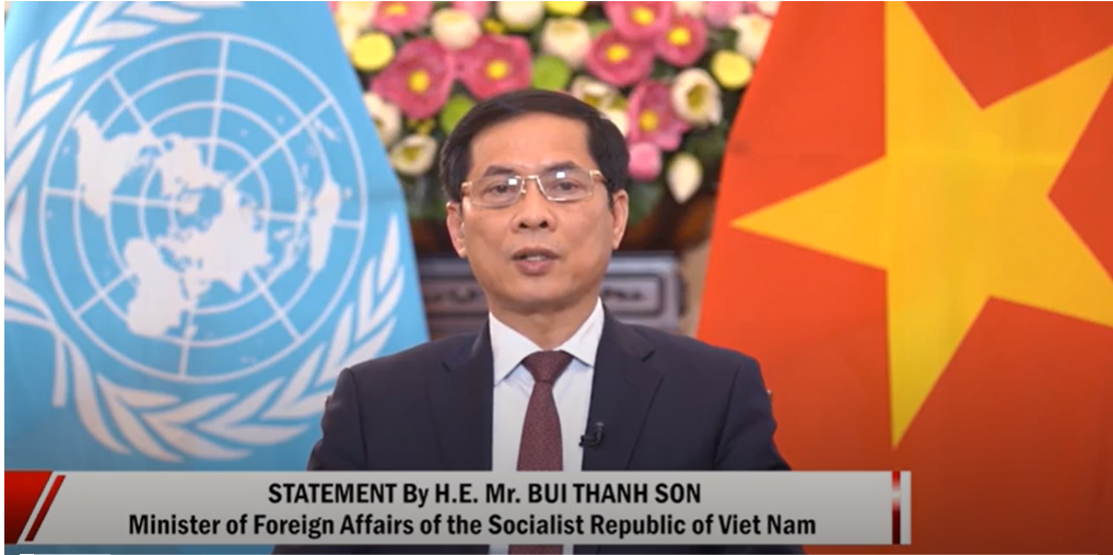 Tại phiên họp, Bộ trưởng Ngoại giao Bùi Thanh Sơn khẳng định thế giới hiện đang trong thời điểm quan trọng, tương lai của nhân loại đang được định hình bởi những vấn đề toàn cầu có tác động trực tiếp đến mọi mặt đời sống như đại dịch Covid-19, tình trạng chia rẽ và bất bình đẳng, xóa bỏ thành tựu phát triển của thế giới nhiều năm qua. Bạo lực và xung đột vũ trang tiếp tục nổ ra và diễn biến phức tạp, không chỉ đe dọa hòa bình, an ninh và phát triển mà còn làm xói mòn khả năng phục hồi mạnh mẽ và bền vững của kinh tế thế giới. Tuy vậy, nhân loại đang có cơ hội lớn chưa từng có để định hình tương lai tốt đẹp nhờ tiến bộ công nghệ và đổi mới sáng tạo. Điều quan trọng là khi tận dụng cơ hội đó cần phải bảo đảm sự bình đẳng, không ai bị bỏ lại phía sau.