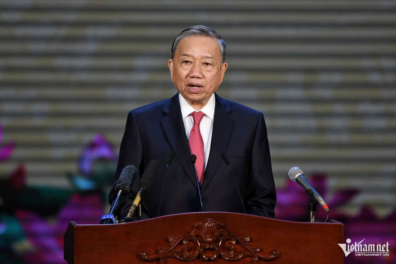 Tổng Bí thư Tô Lâm phát biểu tại lễ công bố sáng 30/6. Ảnh: Nguyễn Huế |