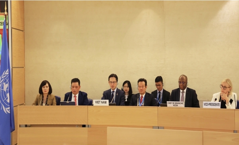 Việt Nam thay mặt Nhóm nòng cốt chủ trì giới thiệu Nghị quyết về biến đổi khí hậu và quyền con người, với chủ đề là "bảo đảm quyền con người trong quá trình chuyển đổi công bằng".